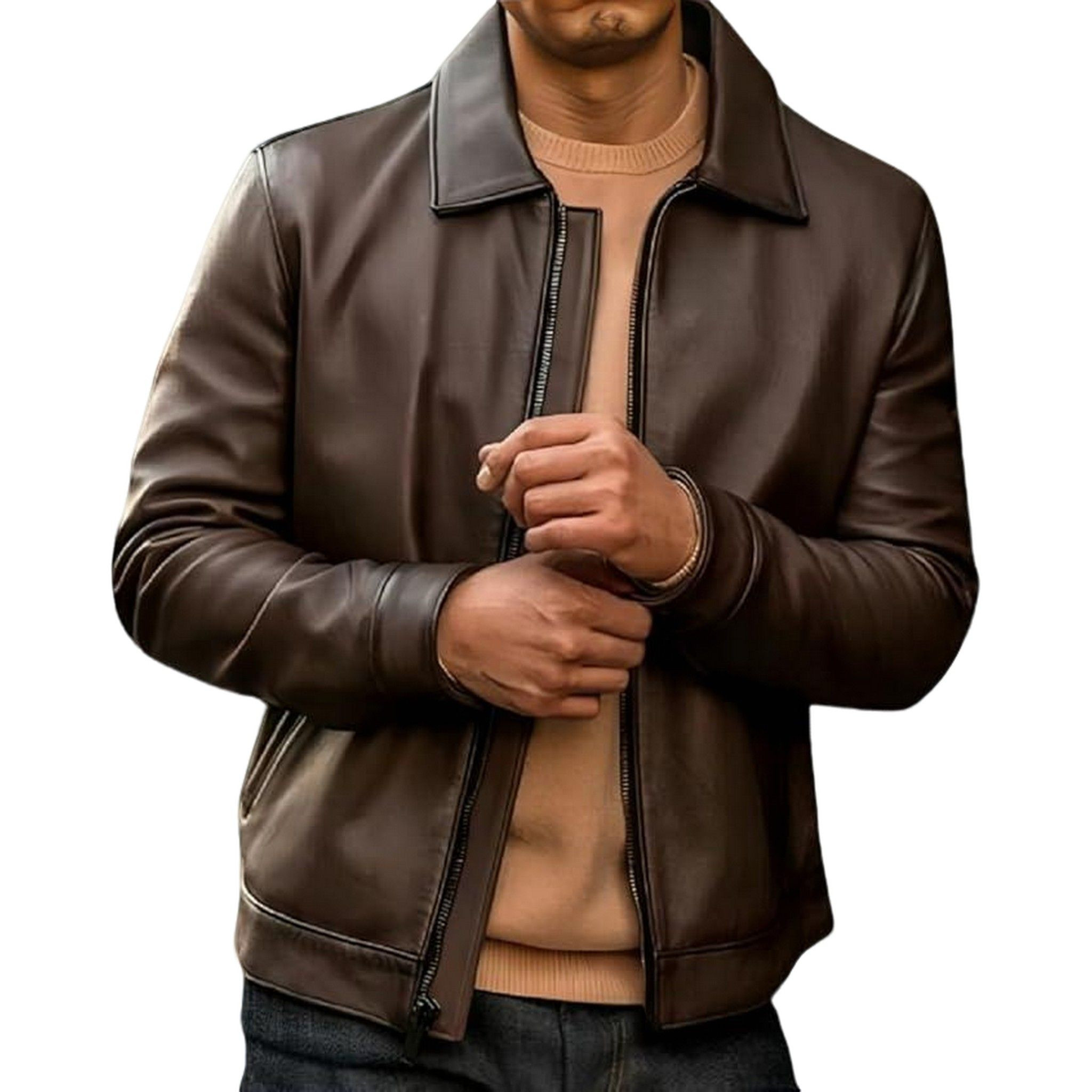 This mens leather jacket boasts an old school classic style, making it a timeless addition to any wardrobe. Crafted from high-quality leather, it exudes a sense of sophistication and durability. Elevate your fashion game with this statement piece.