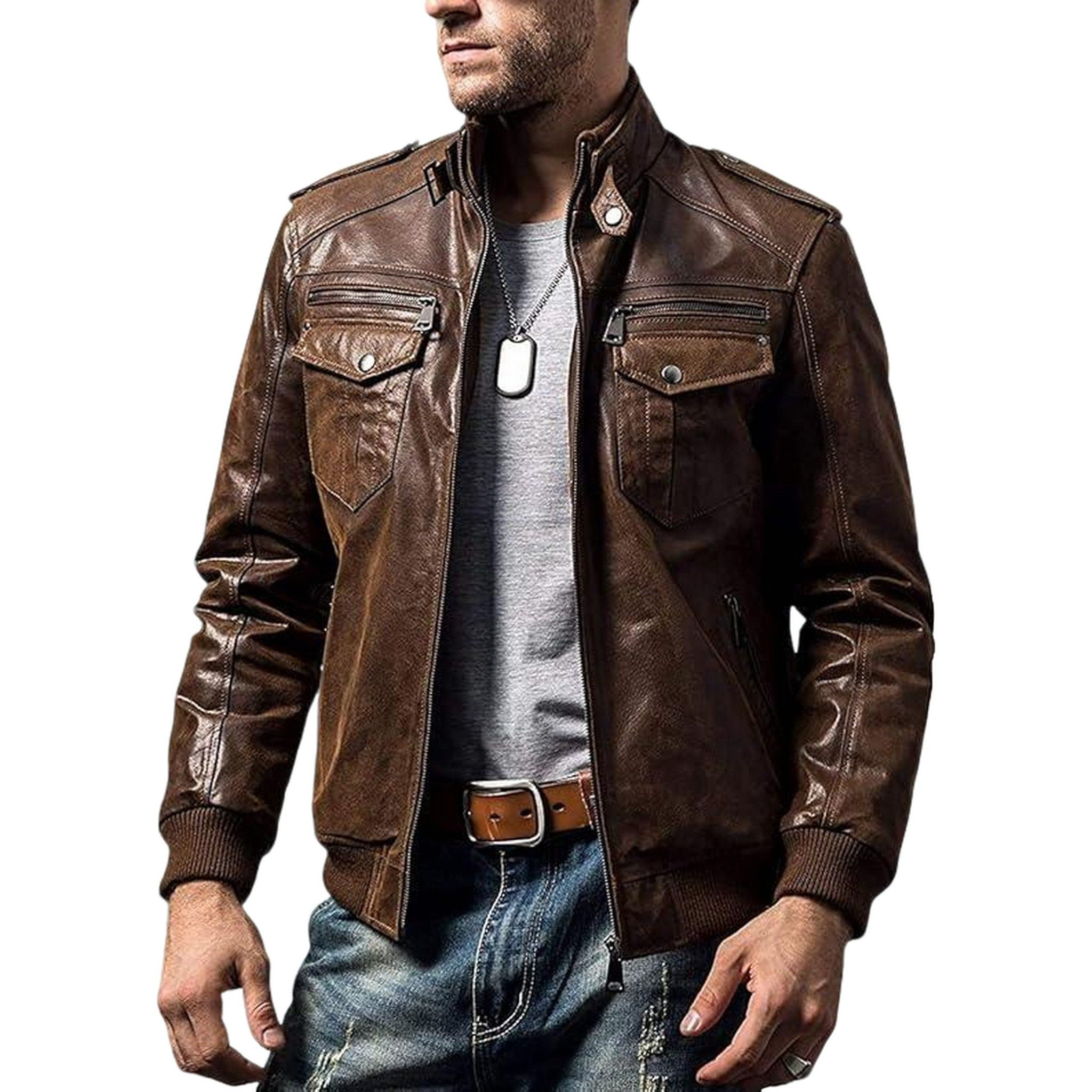 This mens sleek brown aviator jacket provides both style and functionality. Constructed with high-quality materials, it offers durability and comfort. Its timeless design and versatile color make it a wardrobe staple. Perfect for any occasion, this jacket elevates any outfit while keeping you warm and protected from the elements.